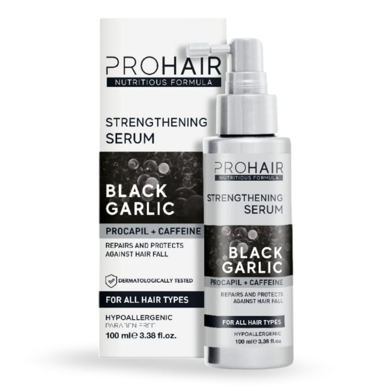 ProHair Siyah Sarımsak Saç Serumu ile saç dökülmesine karşı etkili, güçlü ve sağlıklı saçlara kavuşun. Canlı ve dolgun saçların keyfini çıkarın.